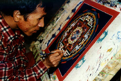 「バクタプルのタンカ屋で曼陀羅を描く男」